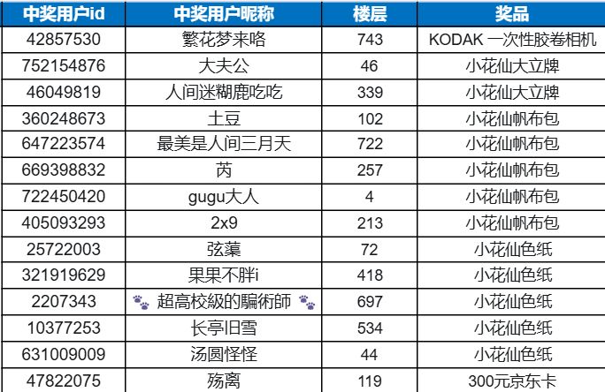 我们将在正确参与的小仙子中,随机抽取*13位,每位将随机获得以上奖品中的1个 !