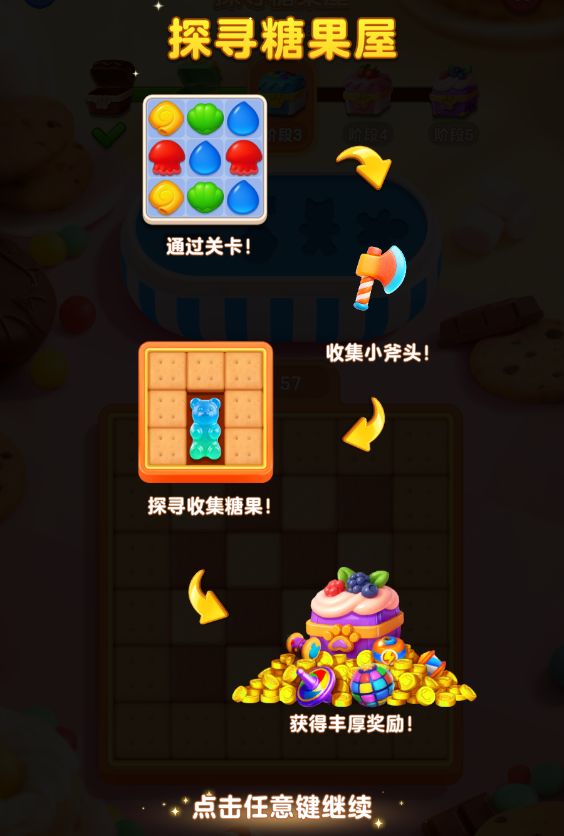 岛主们的任务很简单:通过主线关卡收集「小斧头」,对着饼干就是“咔嚓”一下!需要砸开饼干,把所有藏起来的糖果都找齐!