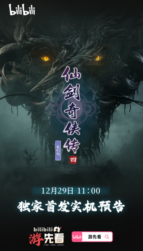 《仙剑奇侠传4 重制版》官方官宣重磅消息,游戏实机预告将于12月29日上午11点,在B站「游先看」独家首发,消息一出便点燃玩家情怀。本作此前已于去年12月18日公布前导PV,此次实机预告将直观展现重制后的品质,引发全网玩家蹲守期待。