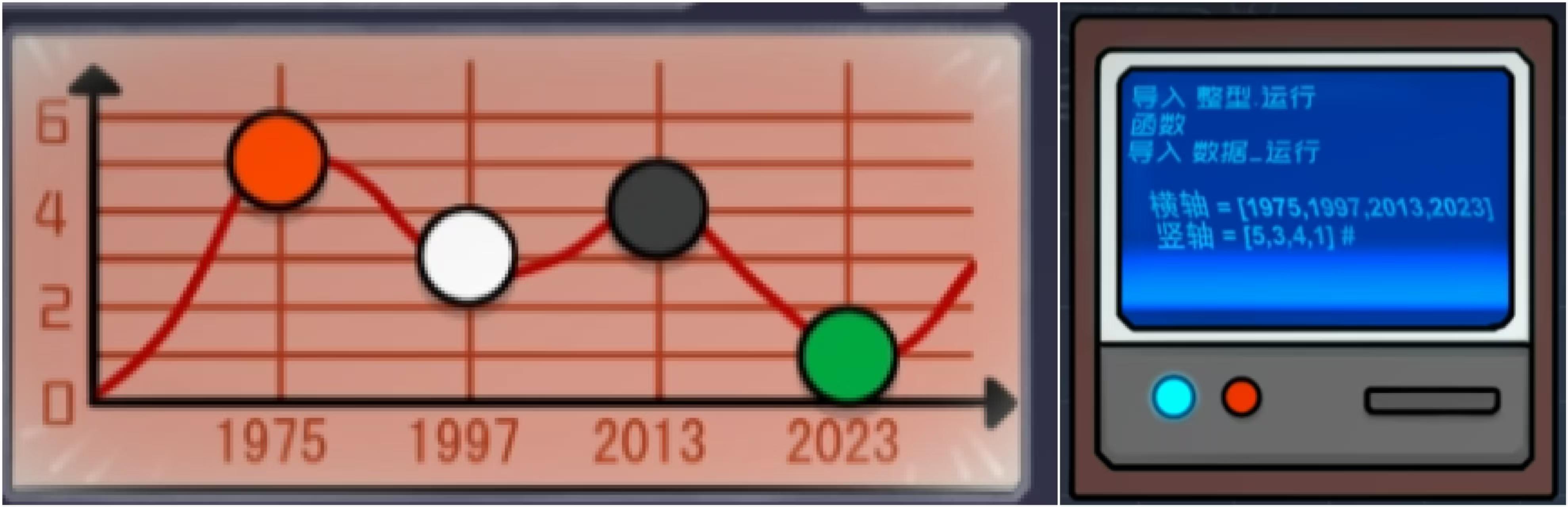3.解5位旋钮谜题(图3),得【修枝剪】,【种子】种入土壤,用【修枝剪】剪花,得【花】。解开数涂小游戏(图4),得「人物卡4👽」。