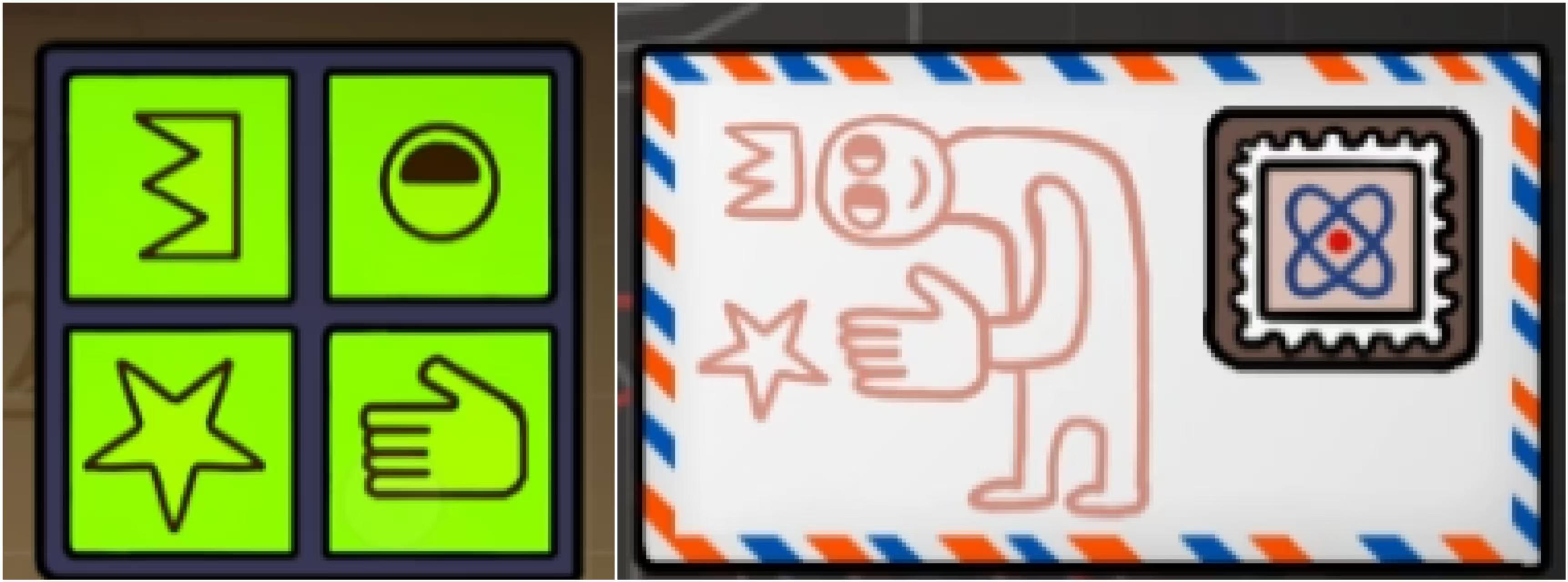 1.打开书,拿【种子】【邮票】,【邮票】贴到【信封】上,拿【杀虫剂】,拿「人物卡2」,玩1221小游戏(图1)。