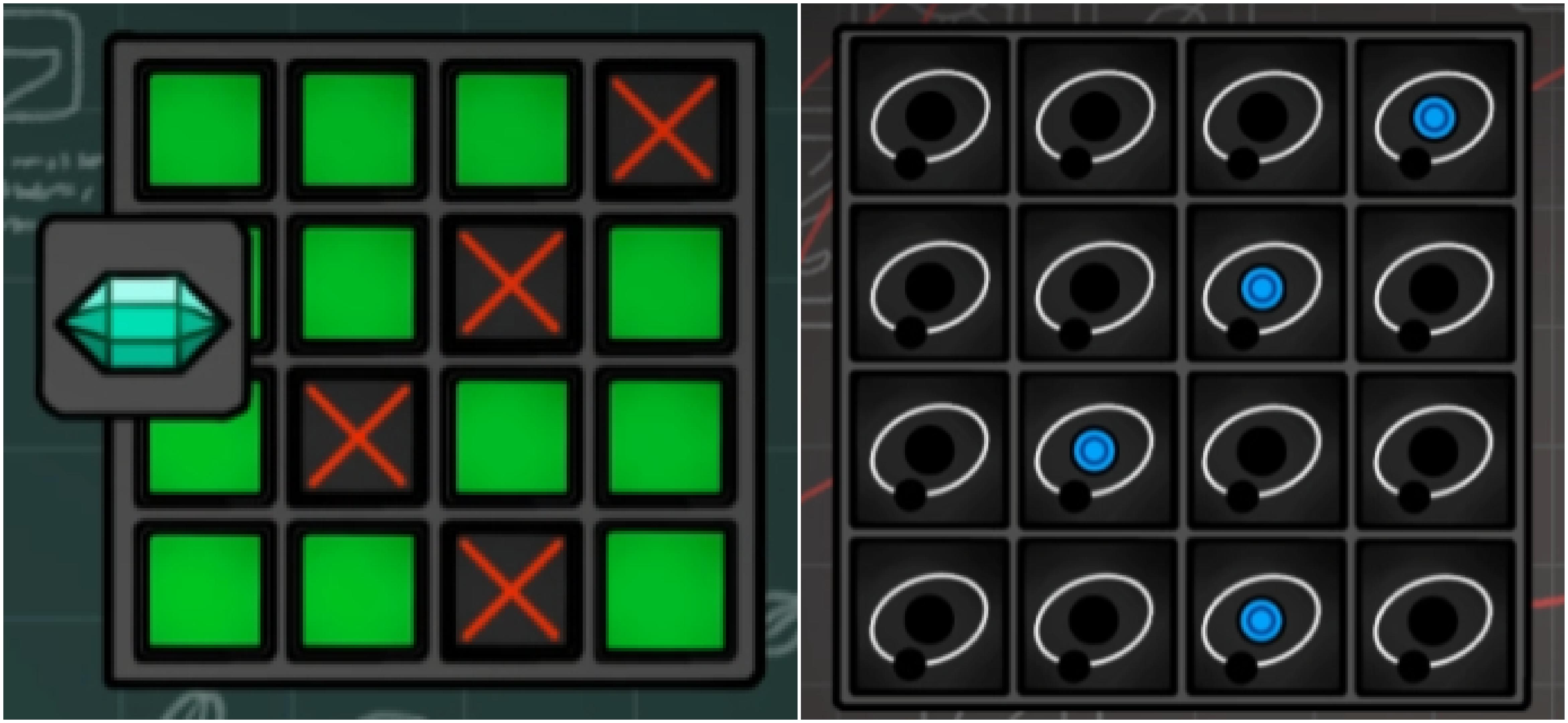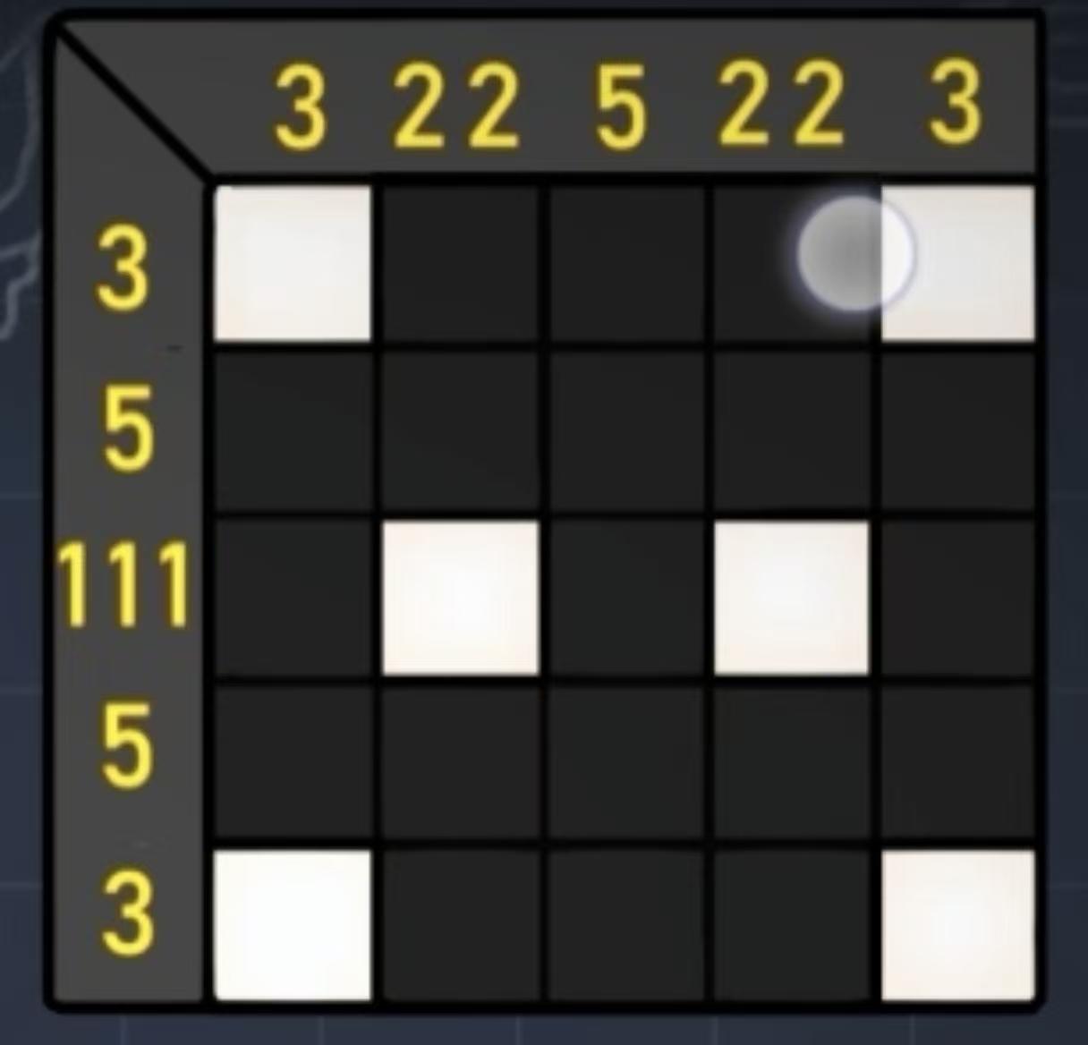5.解开「人5👮♂️」符号时钟谜题(图6),得「人物卡6」,玩5×5蓝格子小游戏(图7)得【钉锤】,【钉锤】砸开「人4」石膏得【磁盘】,【磁盘】插入「人3」电视中。根据「人6」雷达提示解开「人2」中黄红蓝坐标谜题,得【磁铁】。