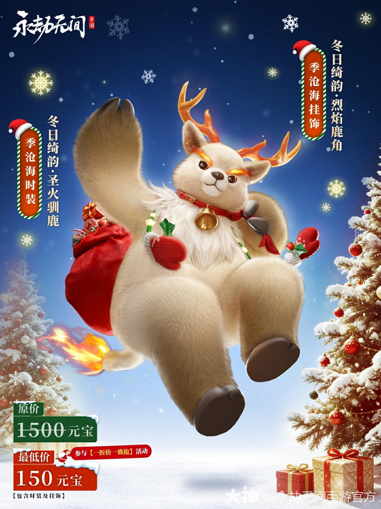 12月25日起,参与活动砍价最低一折获取季沧海【冬日绮韵·圣火驯鹿】捆绑包!还有可爱气泡相赠!