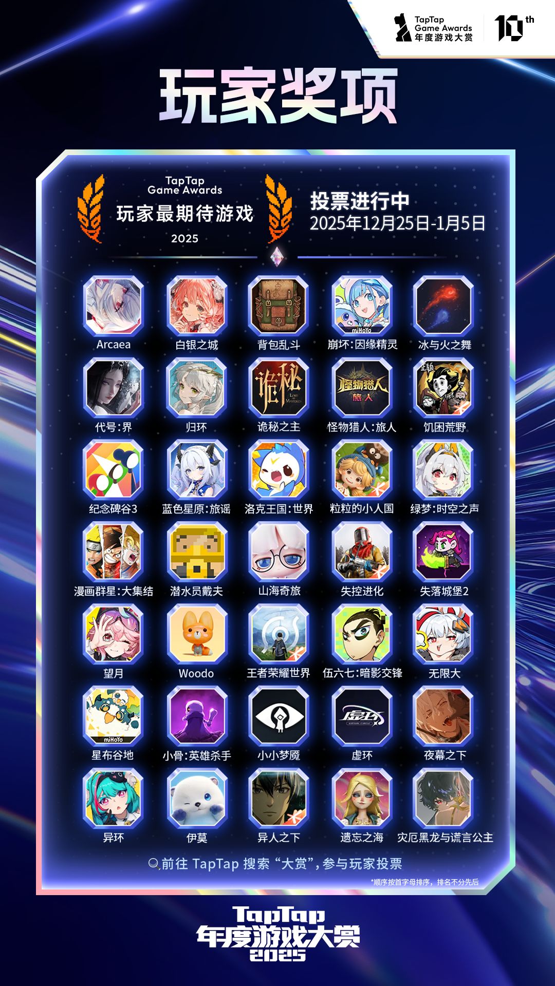 感谢玩家们对 #2025TapTap年度游戏大赏 的热情关注~