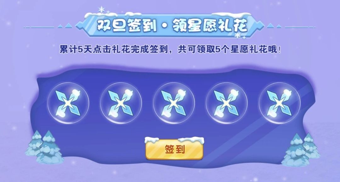 活动期间,每次签到可获取1个星愿礼花,共可领取5个星愿礼花。