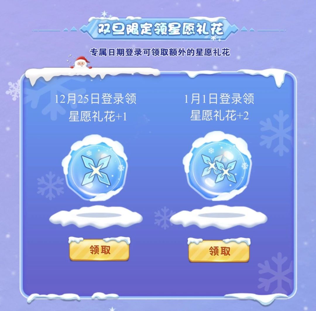 在12月25日与1月1日登录可额外领取星愿礼花。