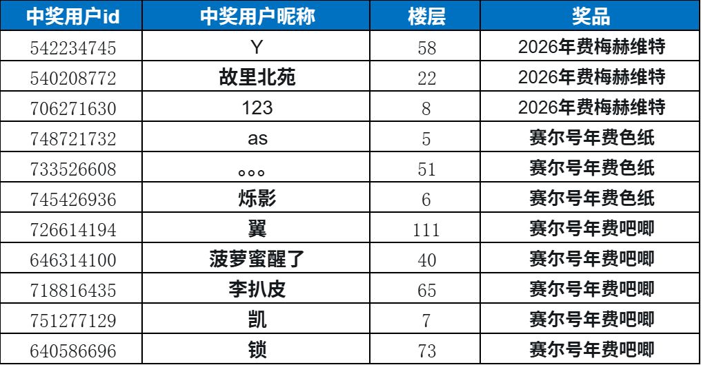 奖品领奖截止日期为:2026年1月26日18:00前,逾期未领取视为放弃本次活动奖励,请各位玩家及时联系官方领取~