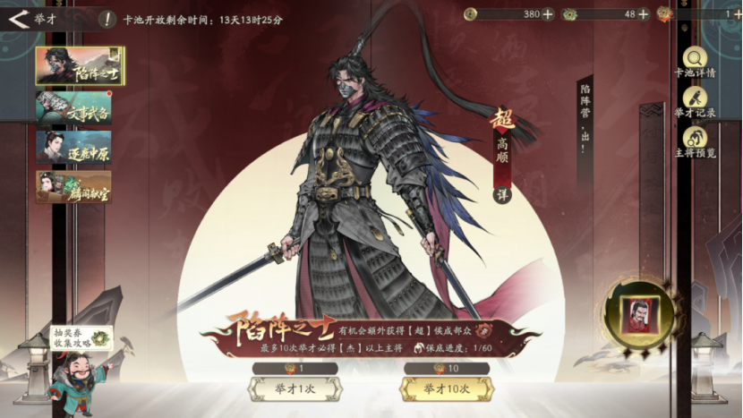 4、限定卡池【陷阵之士】的累计举才次数与其他限定卡池合并计数。