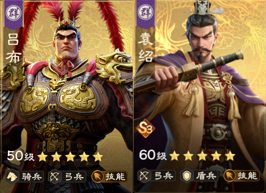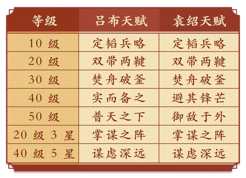 吕布与袁绍的天赋搭配如下表: