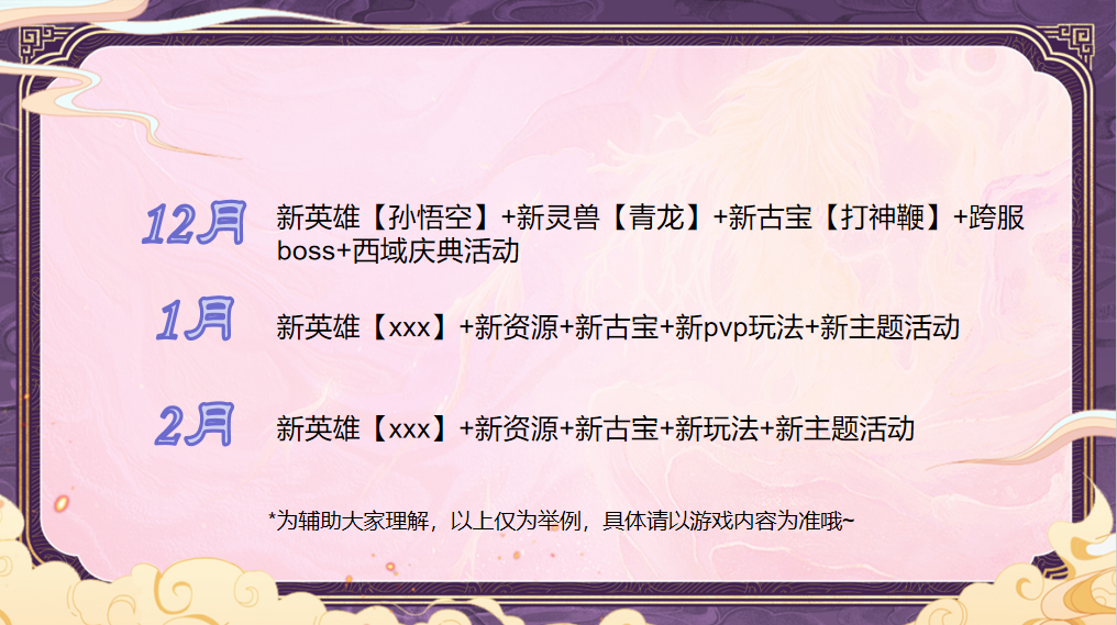构建“每月稳定的资源&活动循环”,让天道之主们清楚知道本月目标,