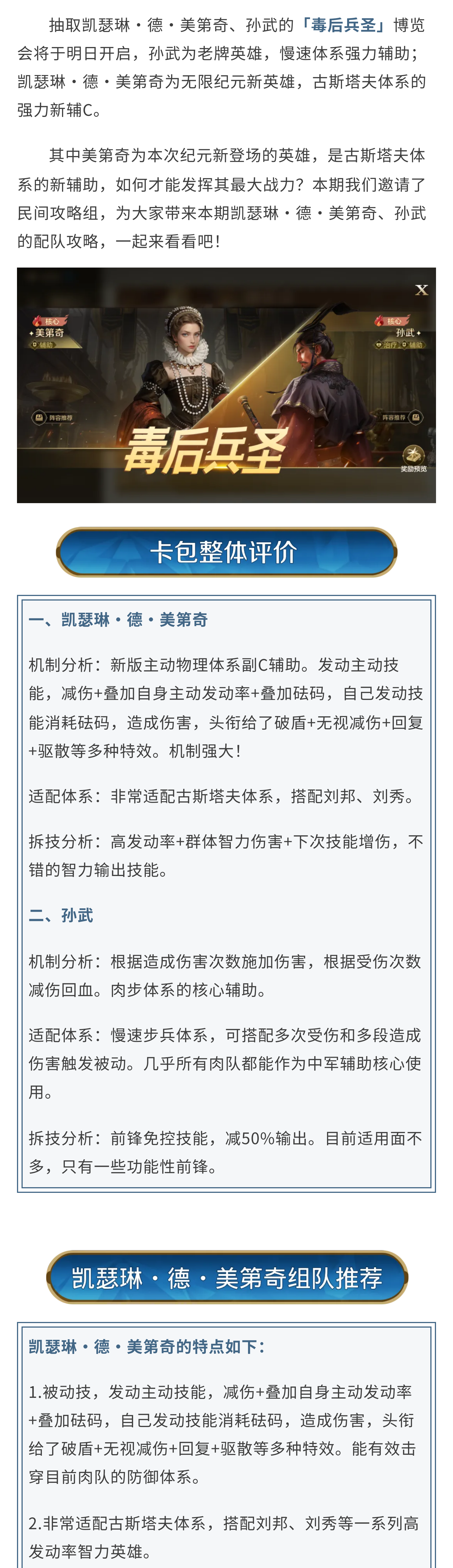 攻略分享丨「毒后兵圣」博览会:美第奇、孙武配队攻略分享