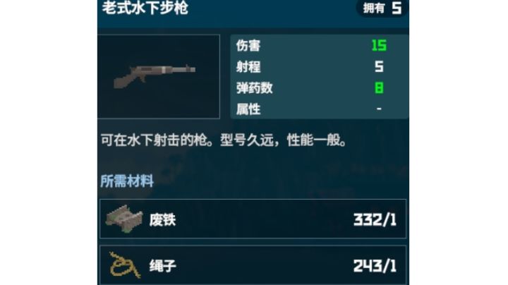 第一个分支五旋枪,一发弹药能打五发子弹,最理想的情况下能打100的伤害,但三旋枪本来就吃操作,射程短而且要把子弹打满才有收益,整成五旋枪就更难操作了,首先得是条大鱼才能吃满伤害,其次这个大鱼也得是把腹部对着玩家的时候这五发才能保证全中,再者得保证氧气值的健康和一定的操作,只能说有死步火步都不会碰它一下,路边一条