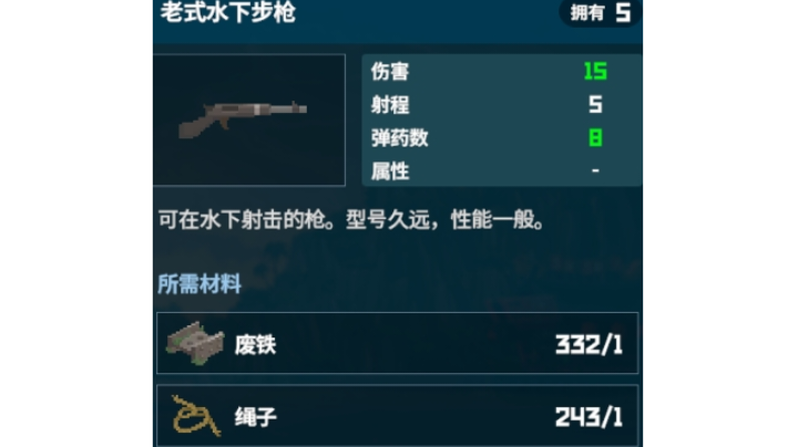 步枪五大分支,哪家才是王?步枪全部分支武器碎片总消耗量:340个后面会有分解潜水途中开出武器和鱼叉的功能,可以大量刷武器碎片,没必要现在硬肝,还是那句话:硬肝伤身伤神,休闲为主,快乐最重要(我...