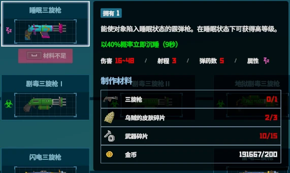 死亡步枪、死亡狙击枪出来后基本上用不上三旋枪了,要伤害不如它俩,要睡眠不如睡神改良飞镖枪,唯一的优点是打出去的子弹多(不是),但中不中就得看玩家自身操作了