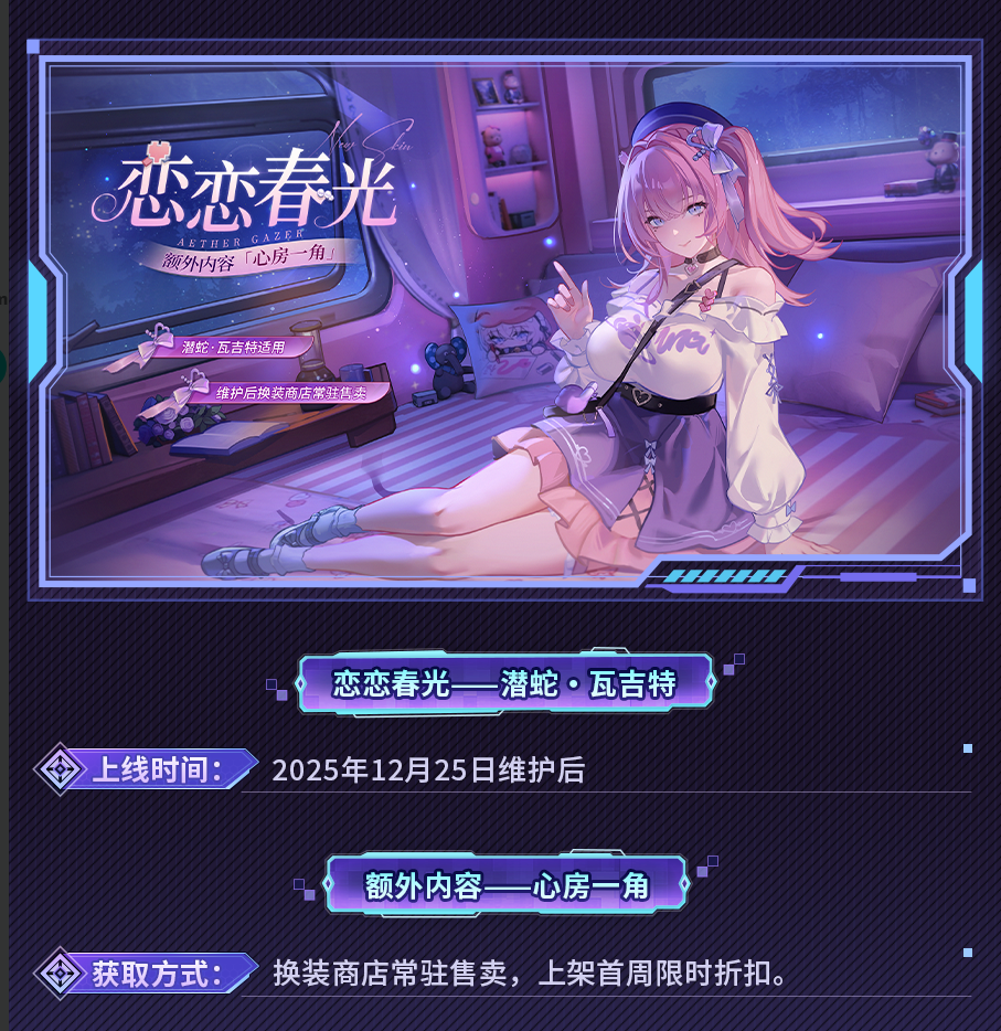 版本围绕着霍德尔的新权钥展开 只是没想到会是雷属性 比较让人意外 皮肤则是新的修女系列(尺度拉满 瑟批狂喜 而且还有其他修女皮的透露 还是可以期待一手)(但是相对的因为皮肤设计过于大胆导致部分单推人的抵触心理 这真的没洗 受众不一样 没有对错 各有喜好 祝每个玩家都有一个愉快的游戏体验 别带入太深影响心情)