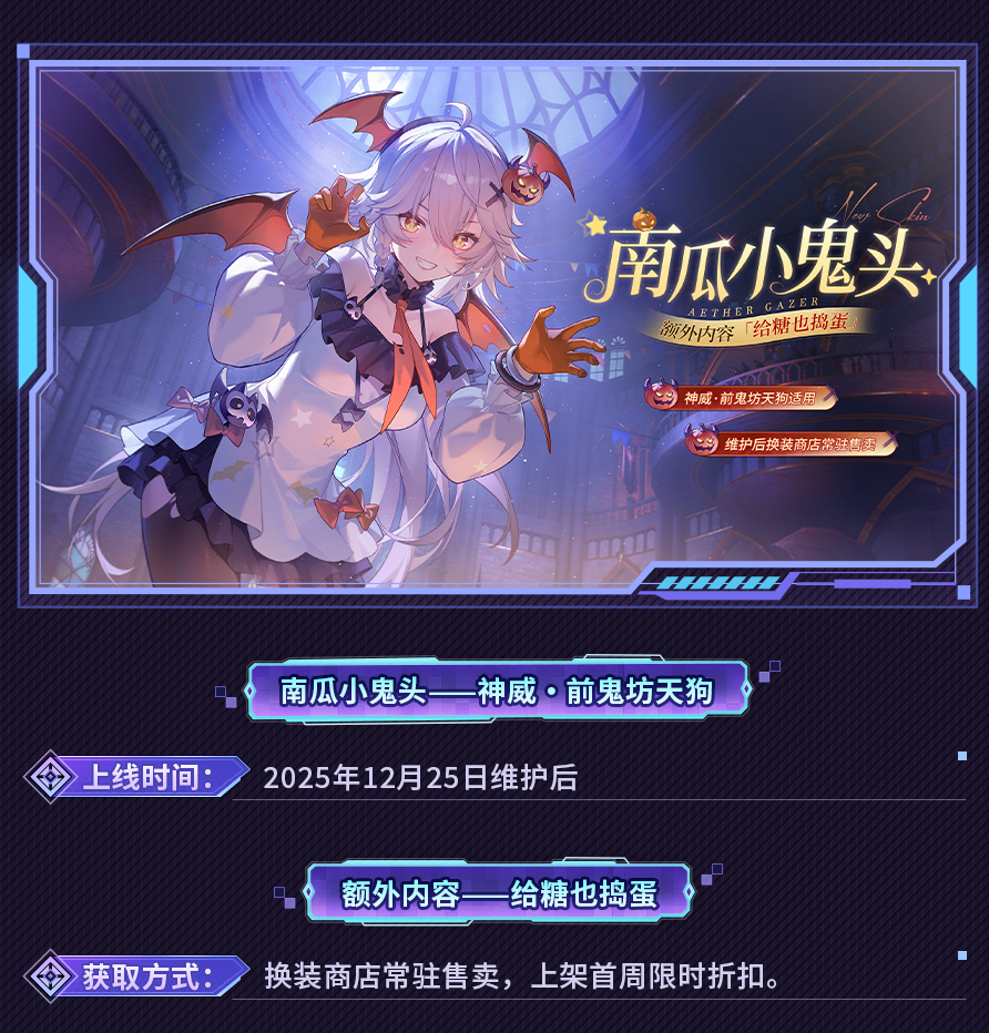 - 南瓜小鬼头·神鬼皮肤 跟水海拉一样是万圣节主体 前鬼的人设就是调皮捣蛋的性格 非常符合人设的一套时装 但是个人感觉没有原皮帅