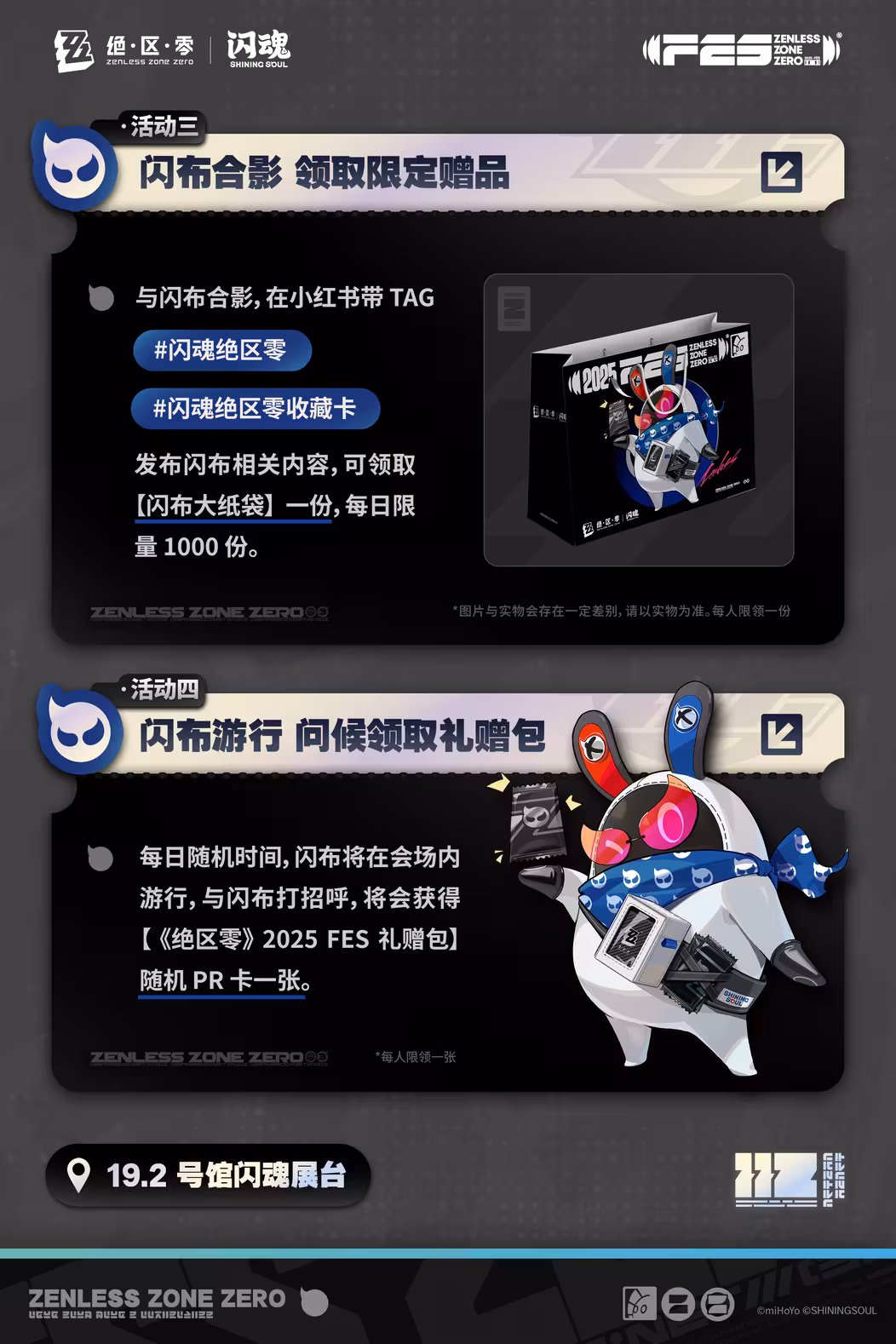 闪魂将于12月26日至12月28日参展《绝区零》2025 FES,将推出收藏卡第一弹,并可通过各种现场活动获得系列礼品,具体内容参照图片。