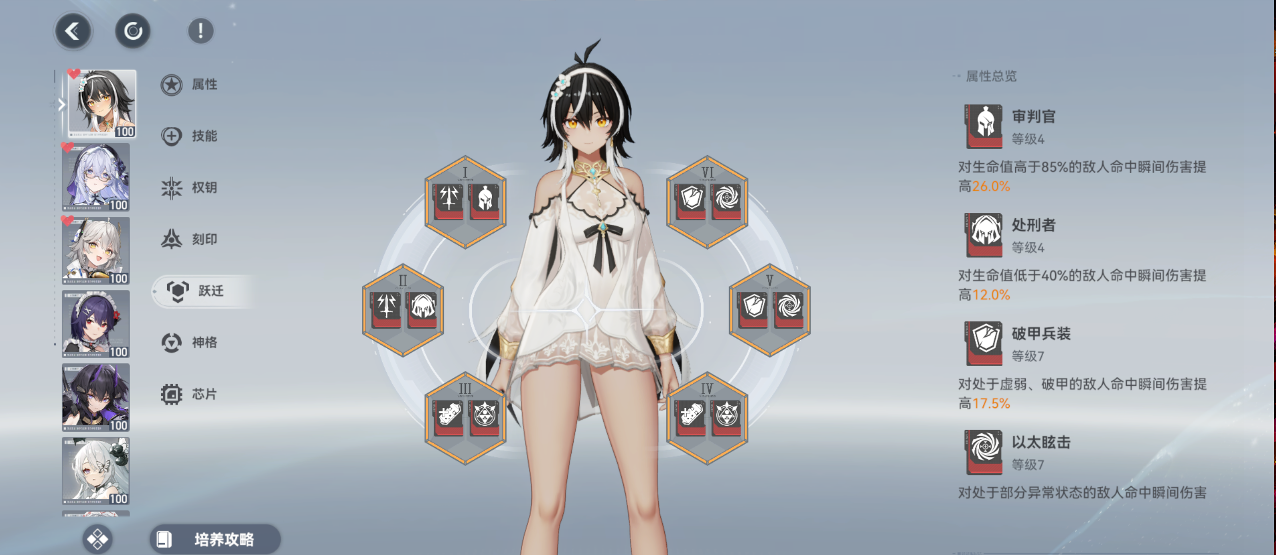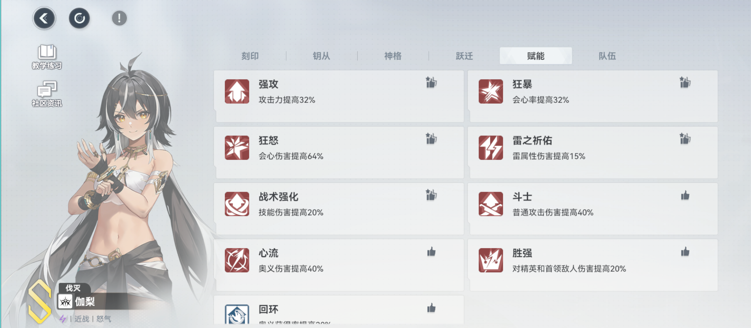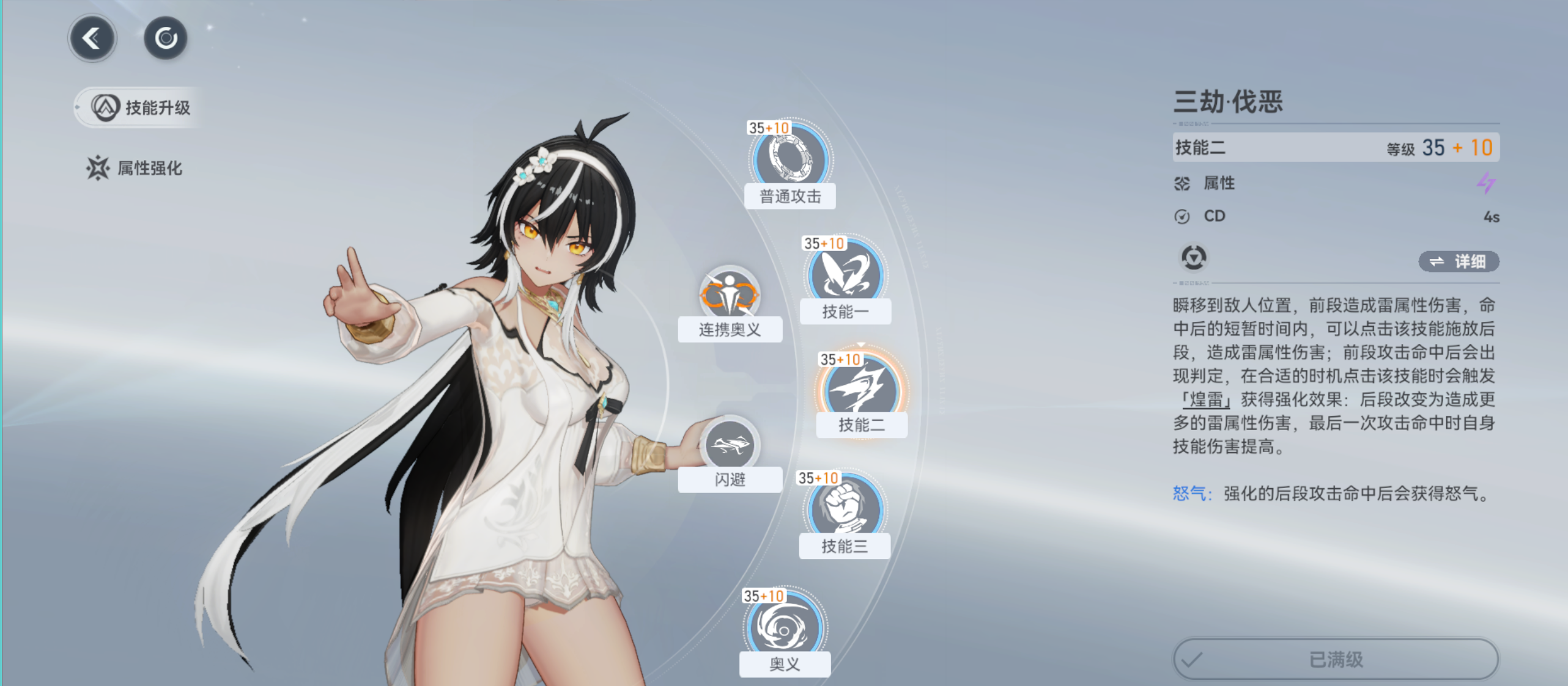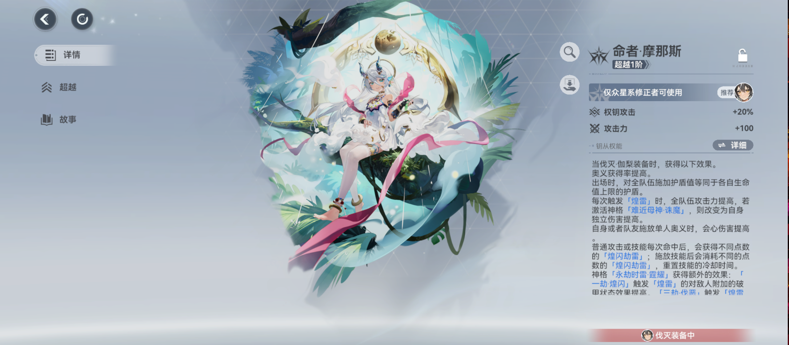- 连续触发2次以上强化普攻/技能 会给与全队雷属性暴击+15% 爆伤+50%