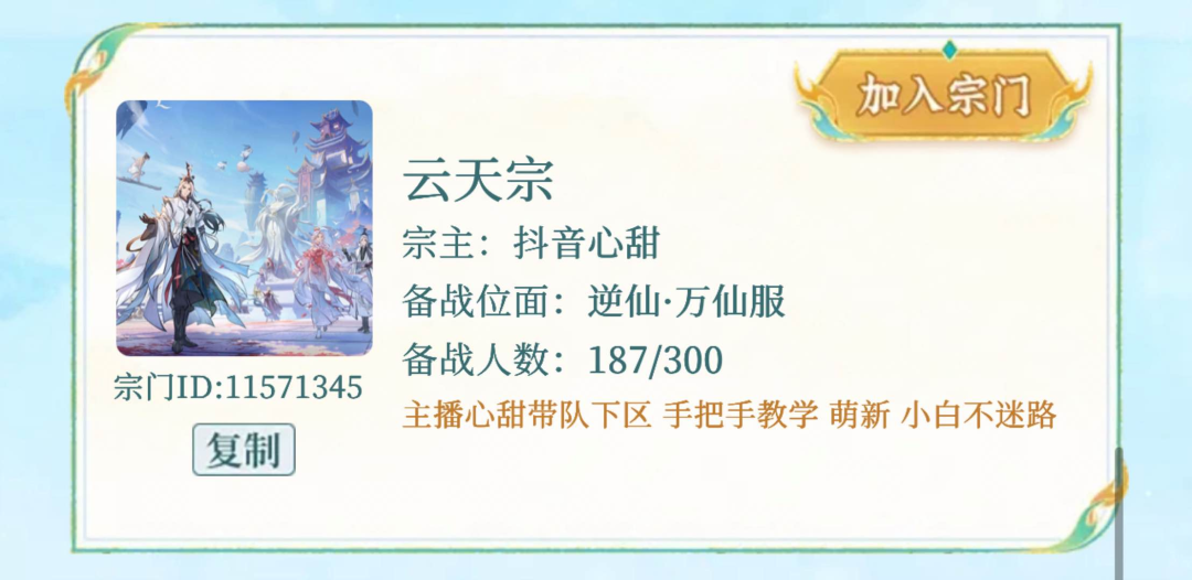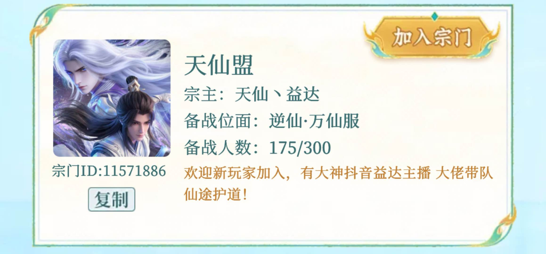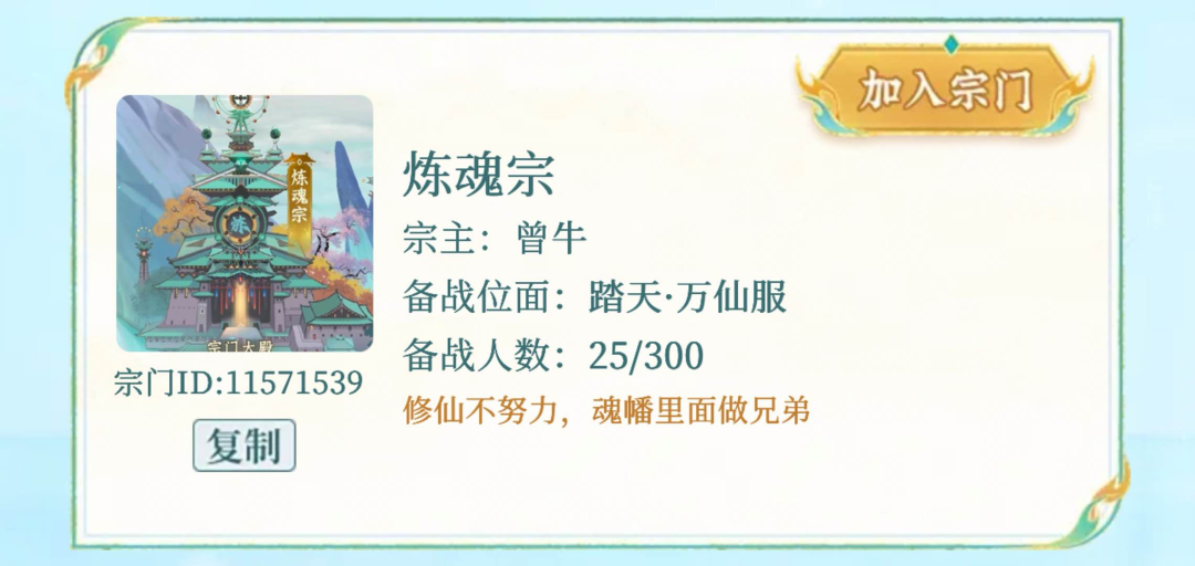 【宗门集结】活动今日(12月25日)抢先开启!不用等到开服,现在就能创建预备宗门(非游戏内宗门)、抢人组队!问心已经看到了不少集结成功的仙长了!