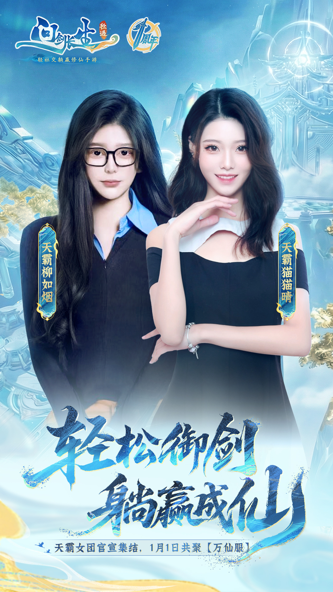 天霸俱乐部也派出颜值与实力并存的【天霸女团】——天霸猫猫晴和天霸柳如烟来万仙服了!轻松御剑,躺赢成仙的同时,也不妨碍夺金!