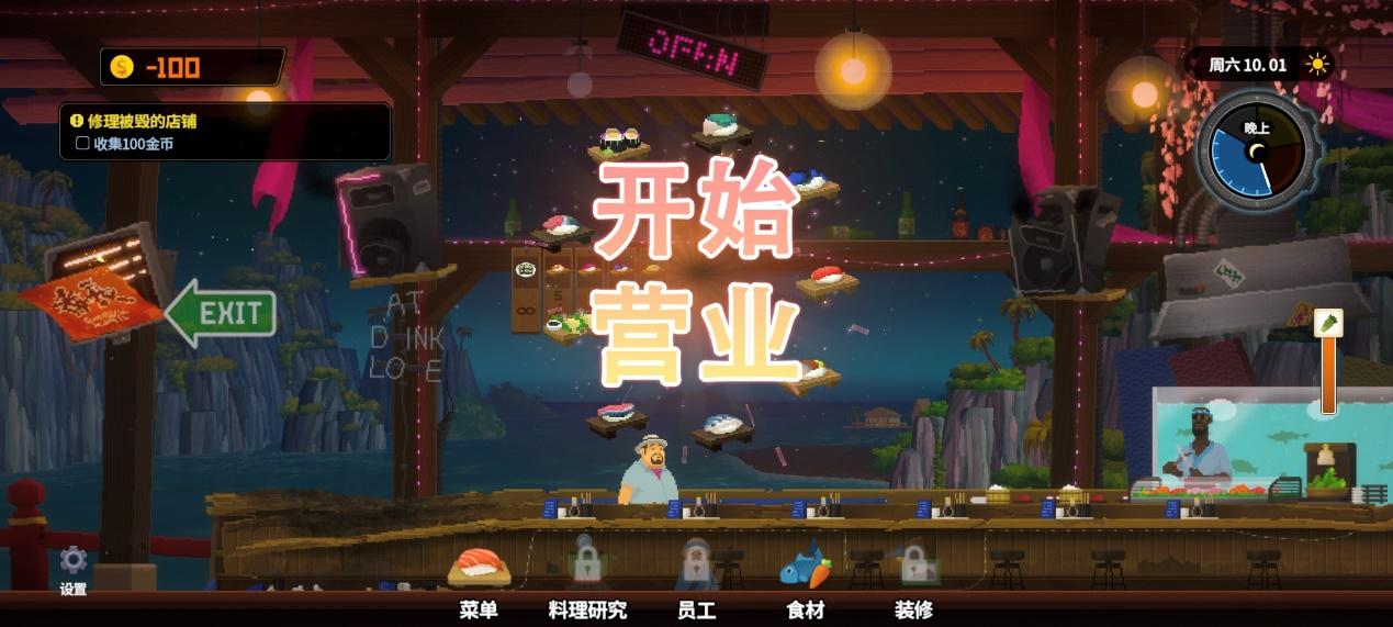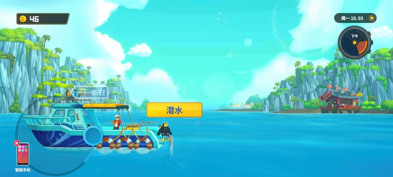 《潜水员戴夫》的手游目前只开放了序章和第一章内容。内容上几乎是PC的完美移植,一样的从沙滩醒来,一样的从船上跳进蓝洞,一样的晚上去寿司店帮忙。