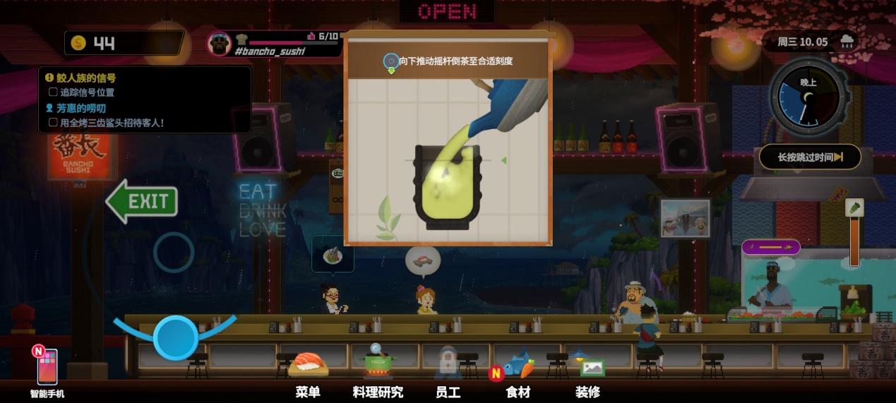 有一说一,《潜水员戴夫》这游戏本身就非常适合手机游玩啊,本身就是碎片化的设计,将游玩流程分割成一天三段,早上中午晚上,然后还有不同的游戏内容来调节节奏。