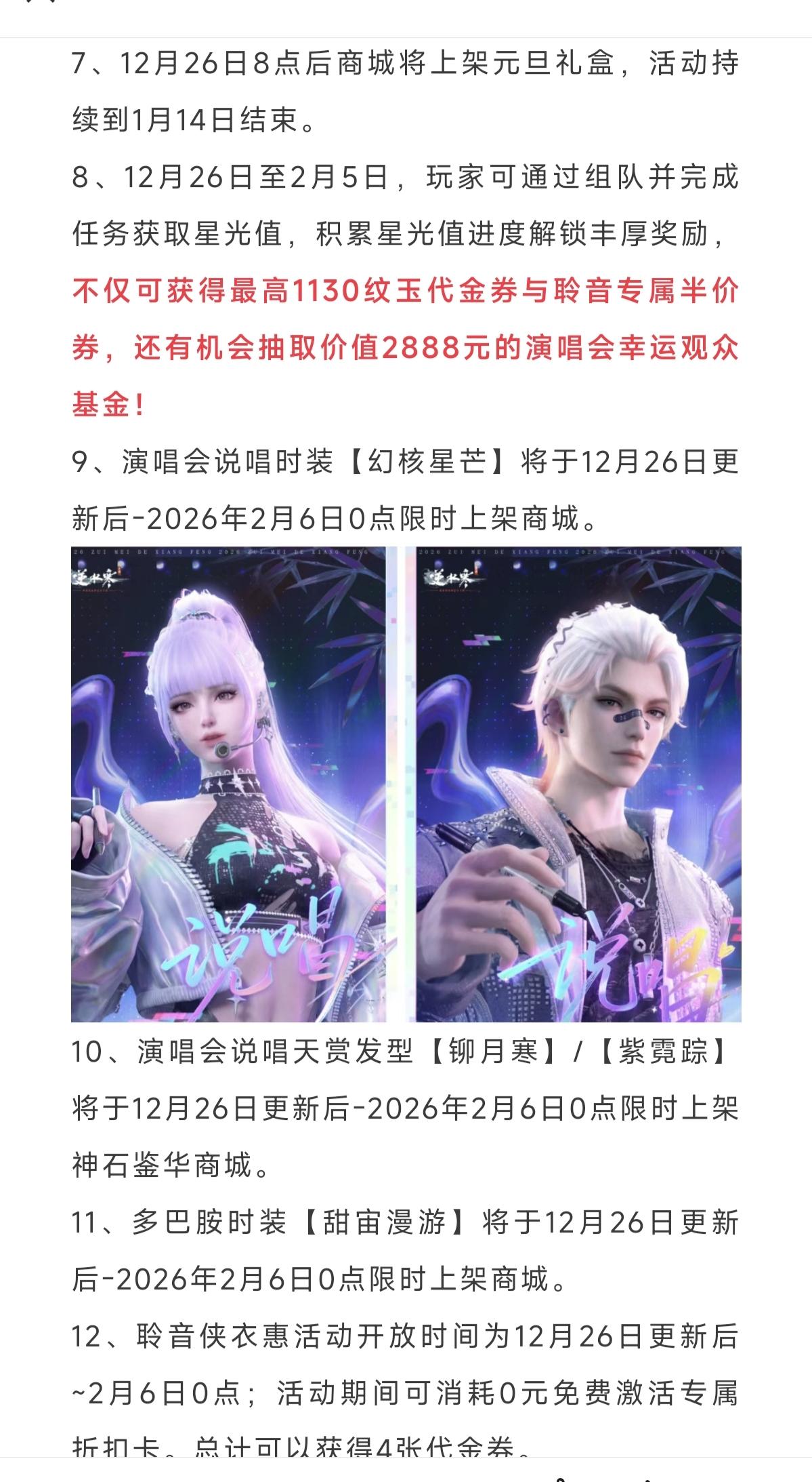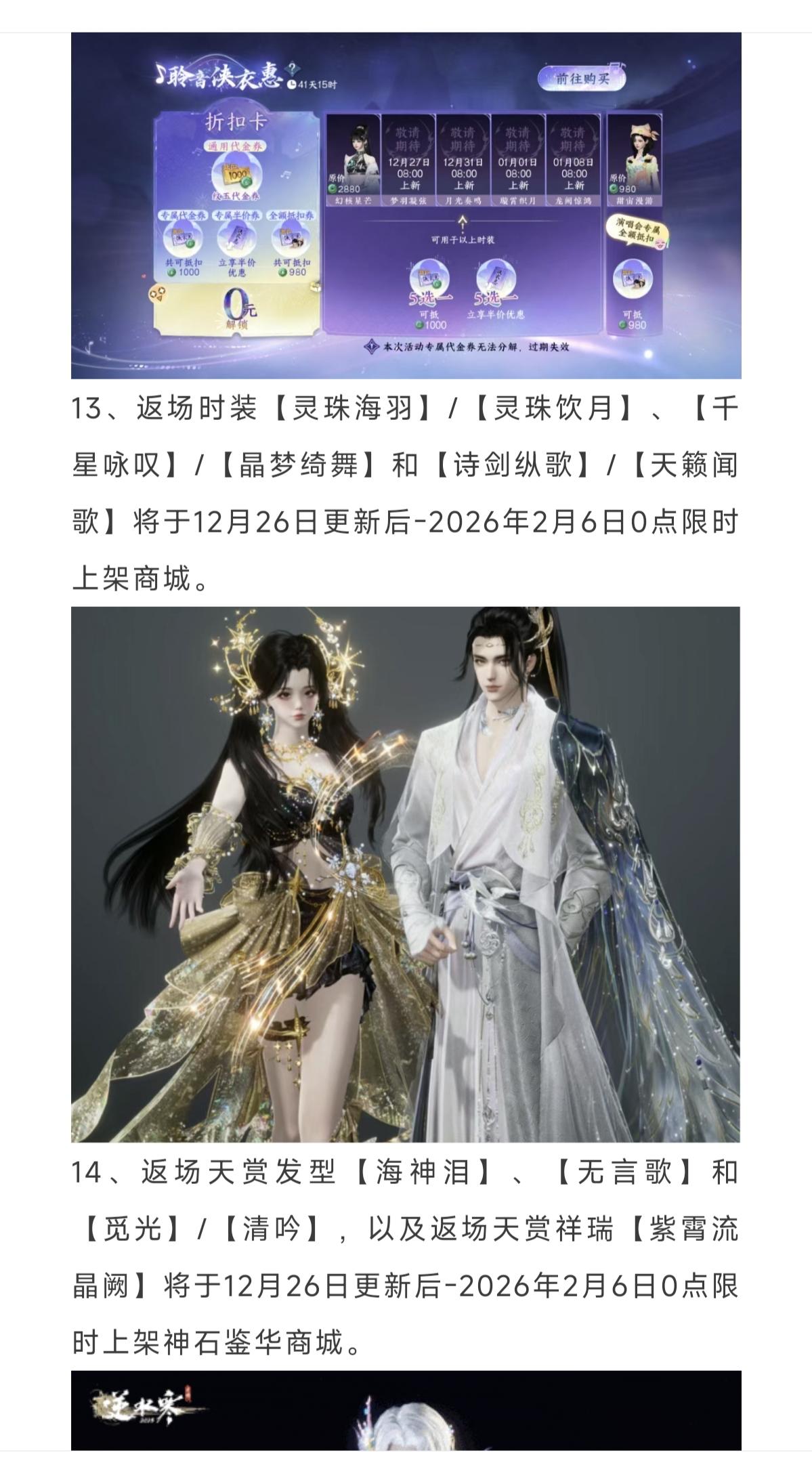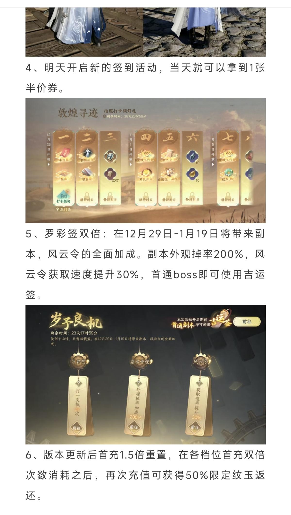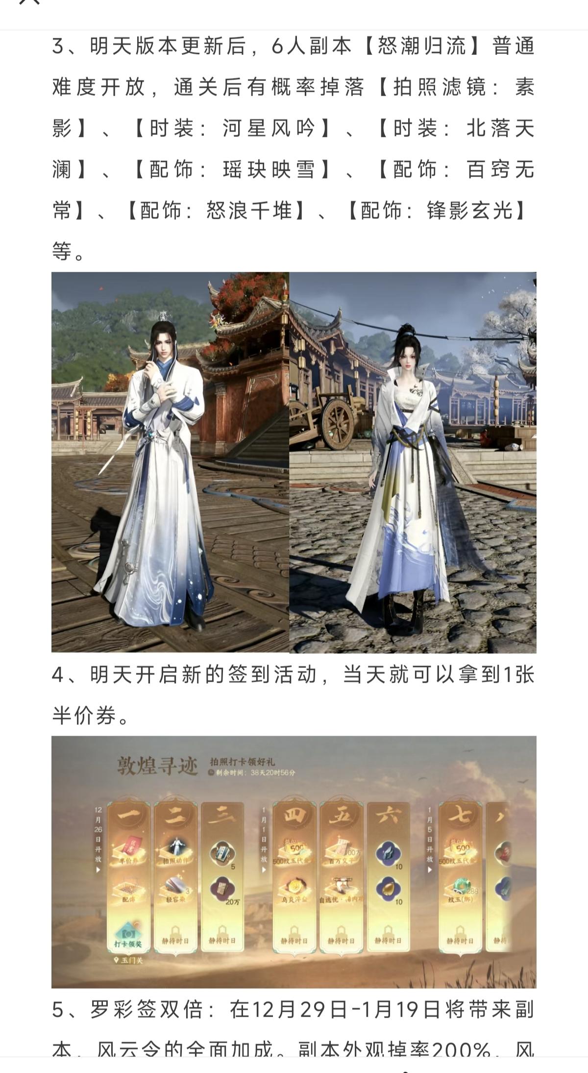 逆水寒手游明天6款外观返场,罗彩签双倍,1130纹玉代金券,免费拿新时装,商城上架元旦礼盒
