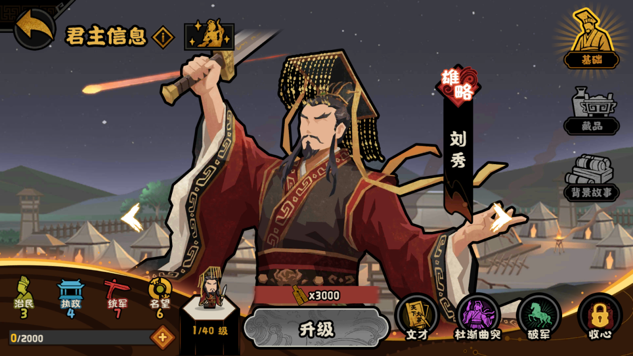 写在前面:各位王上好呀,我是子在川上曰。今天带来的是全新君主刘秀的详细解析,一共包括了君主游历、君主藏品两大板块