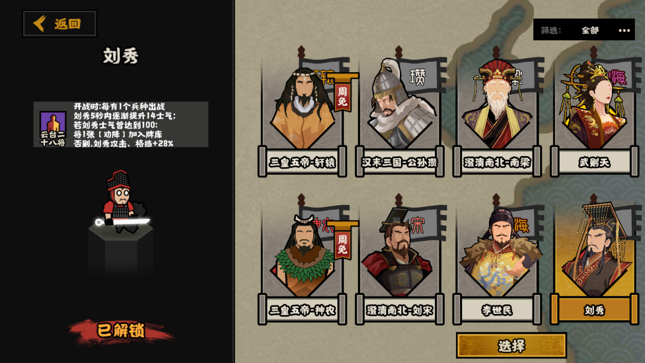 【赤伏符】:获得步兵武将【刘秀】,拥有兵法【天选之人】:军团格挡提升20%,使用卡牌时:有概率召唤陨石,对全体敌军造成范围伤害。