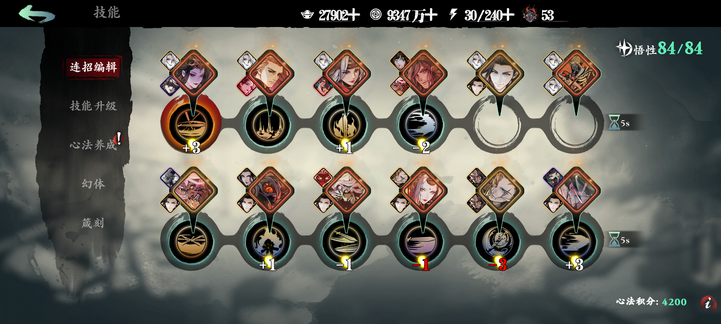 中低练度,心法积分 低于 5000,低于6500的情况