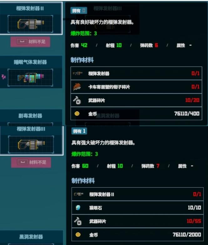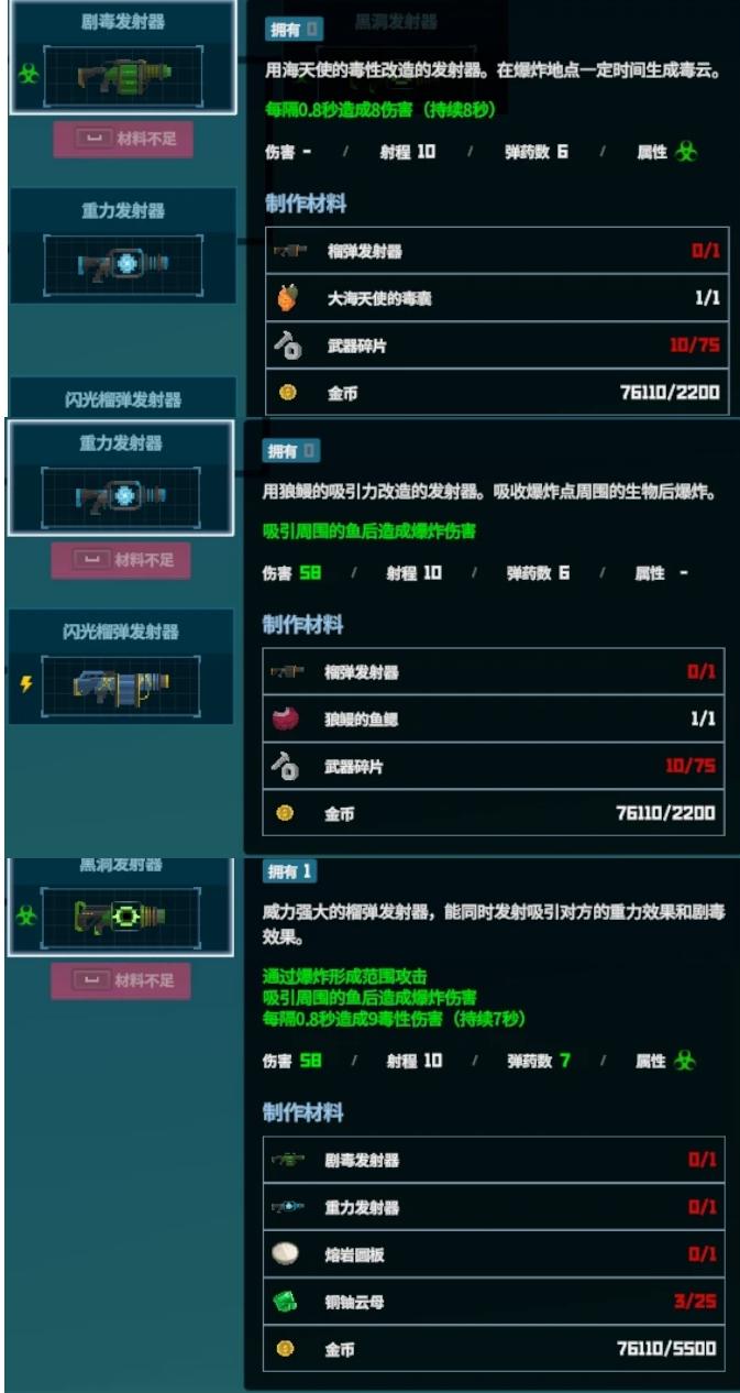 榴弹发射器材料较为基础,榴弹发射器优点在于伤害不算太低的同时,有射程也有弹药量,还能产生爆炸炸鱼