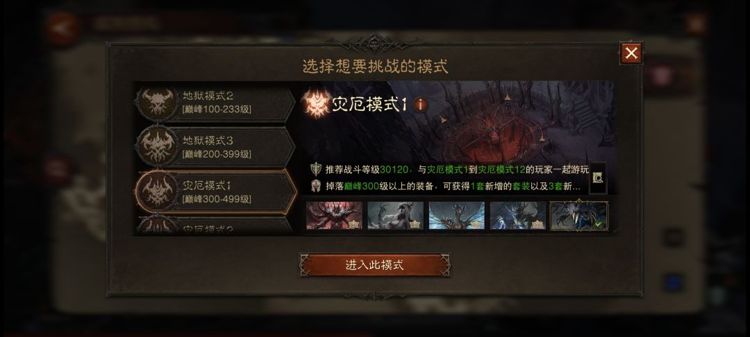 :可能你在准备玩之前,看过了自己想玩的职业相关装备搭配推荐,但是你可能不知道,有些推荐里的装备,是要在你当前难度达到对应难度要求后,才会掉落该装备的,没到这难度,是刷不出这个装备的!所以,想要某件装备,一定记得查看一下这件装备是什么难度以上才会掉落。所以也是有些人想早点进下个难度,找人帮忙打魔神开难度(开门:地狱几或者灾厄几的战力门槛),没人带的话,就得自己慢慢积累装备,强化,人物等级,贡献值,传奇宝石……等等倒也有很多方面可以提升战力等级。