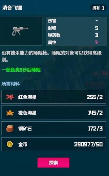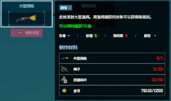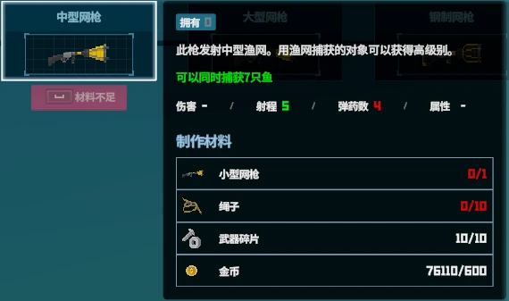 中型网枪:发射中型渔网,能抓泰坦扳机鱼等体型的鱼,加了一发弹药