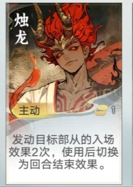 主动技能:发动目标部从的入场效果两次,使用后切换为回合结束效果同样是发动两次。