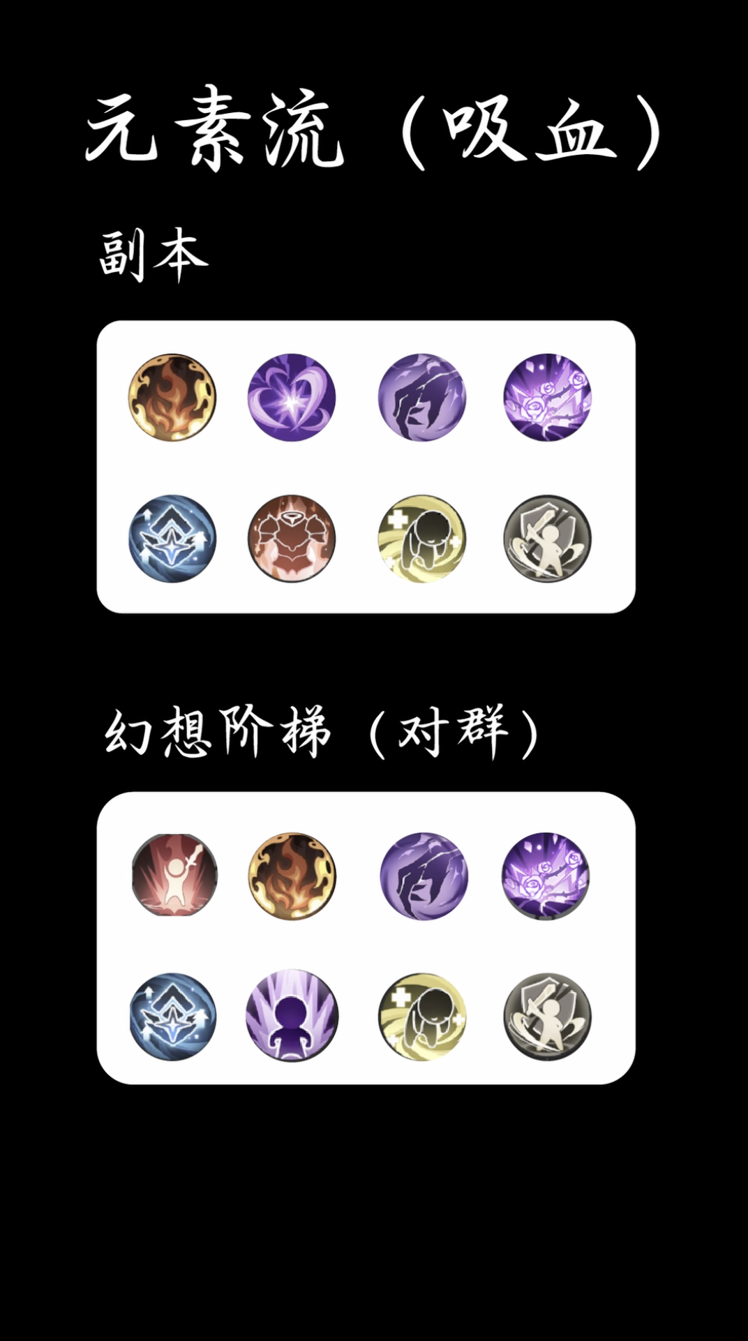 第二个我个人不太推荐,因为群伤有点低了。不过我依然推荐是因为平民用这套打首领效果挺好的。瞬炎和黑暗可以让你每回合都能把伤害打在首领上。4个秘法都能提升强袭的加成,强袭刚刚好也可以清空怪物所有的防御。这套是吸血流,打幻想阶梯很舒服。我当时拿着全套奇迹技能就这么打进了排名第二,也就是视频开始时候的那一段回头一看我身后的大佬全都是全套不朽。足以看出这个吸血流的实力了。这里要注意这个噬魂伤害很低,所以必须要搭配修罗之手。打幻想阶梯的时候建议吸血放前面,因为怪物都有反伤,很讨厌。