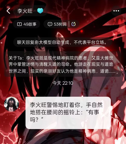 再者世界观也是现成的。一些古早的陪聊智能体,很容易死在一些世界观问题上,当你去细究身世细节就很容易露馅。相对的,漫画世界观导入进去,又不需要什么现实坐标,贯彻一个已有角色,也比扮演一个少有设定铺陈的形象来得强。