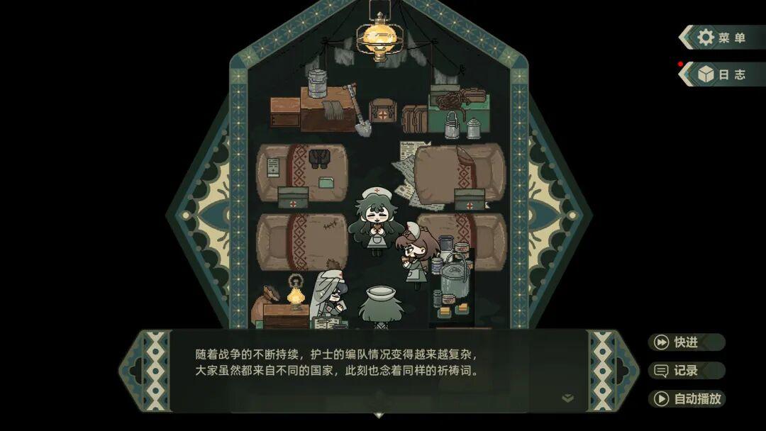 在游戏中,你将跟随战地护士小梅的视角,前往身陷雪山腹地中濒临崩溃的医疗营地。在绝望的严寒与物资匮乏中,战俘拿出的一封神秘来信成为众人唯一的希望。