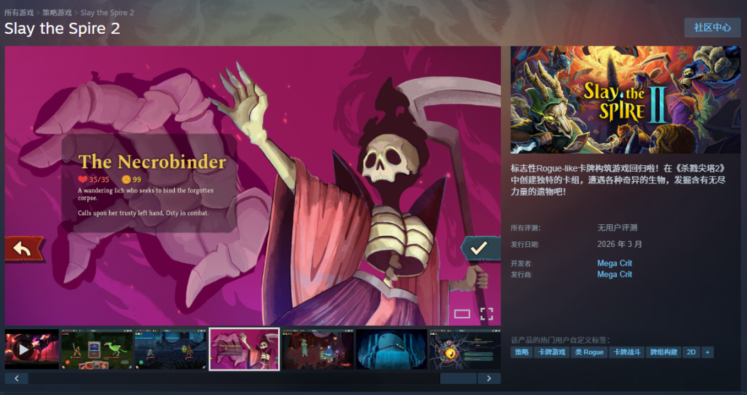 融合了Roguelike与卡牌要素的《杀戮尖塔》目前在Steam上有着97%的玩家好评率。续作《杀戮尖塔2》已于去年公布,预计明年3月在Steam上推出抢先体验版。
