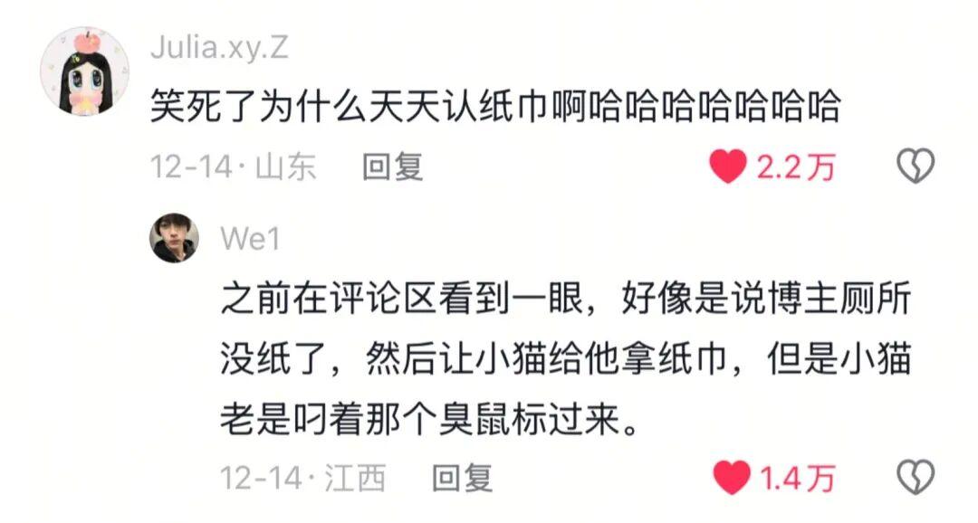如果真是这样,那就不免让人怀疑,开门会不会把鼠标当成纸巾叼着去给开门妈擦屁股。哪怕真教会了,等哪天实操的时候,开门妈在厕所里大喊:“纸巾”,开门也只能一直在客厅里拿那个爪子搭在纸巾上。