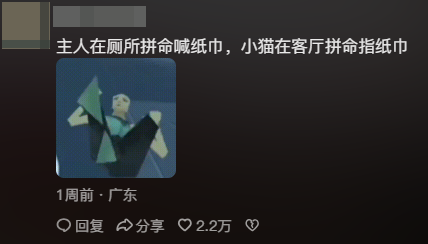 而当主人如法炮制,一连发布了好几个教它学“纸巾”的视频后,网友开始好奇,为啥开门妈这么执着于纸巾教学?