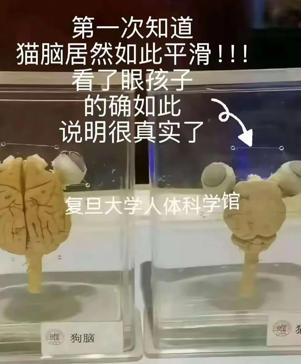 先不说大部分猫的大脑皮层如上图一样,光滑到几乎没有褶皱,单说开门这个个例。你可以说它算不上考研的料,但察言观色这一块,人情世故这一块,它完全是考公的好“猫”才。
