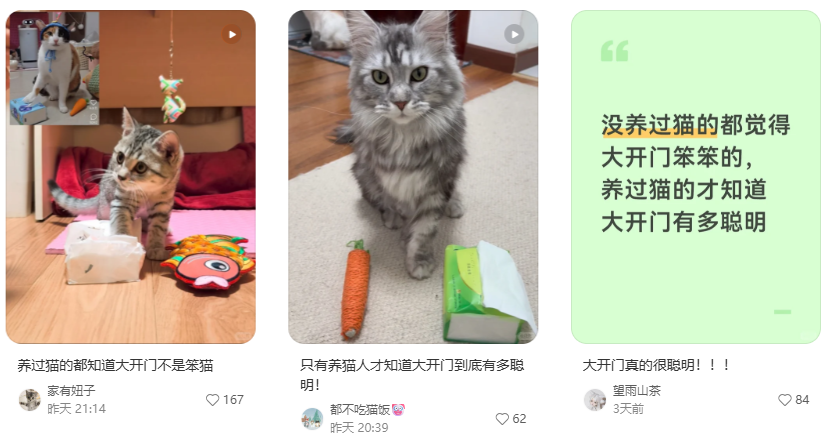 跟二创的火热一起到来的,其实还有各路网友们给开门的平反。越来越多猫奴给自家猫考试的时候才发现,开门能安静坐着任由妈咪戏耍,已经打败了99%的小猫。