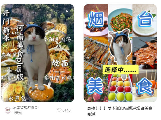 现在,就连“萝卜”和“纸巾”这俩固定演员,也逐渐被替代成了别的东西。不少文旅官号,还让开门当宣传嘉宾,给大伙整两口河南烩面、江西瓦罐汤之类的。