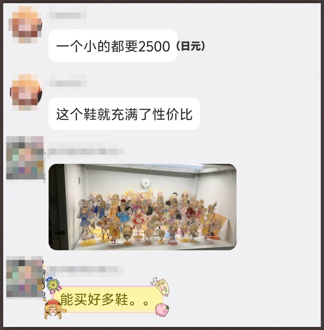 很多时候一个小的官方周边玩偶都要2500日元(¥110左右)了,能买好几双鞋。