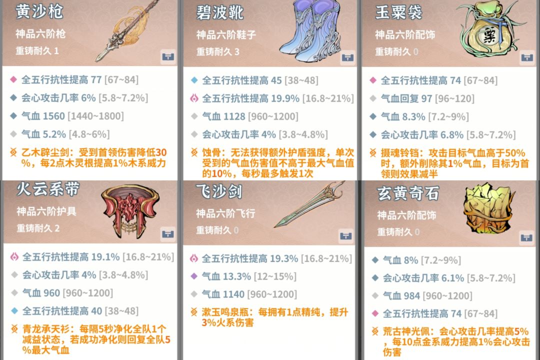 法宝词条选择:鞋子和护具需要用粉红词条全五行抗性提高%再带个全五行抗性。其他词条:会心几率、气血%、固定气血