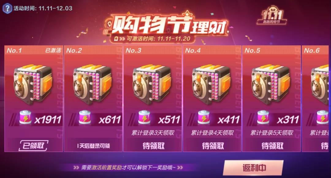 在11月11日—11月20日期间,车友们只需花费198元,即可激活购物节理财活动,激活后即可获得第一档奖励。