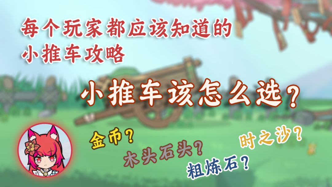 小推车其实和秘境差不多的,也是能够产出秘境中的这些资源。除此之外,还有装备和幻兽粮食。那么在这里我强烈推荐大家在选择小推车的升级项目当中优先升级木头石头,其次是粗炼石。等这三个满级了以后再慢慢平均升级剩下所有的选项。这属于懒人攻略,如果对自己的角色有更深入需求的玩家可以去看我这篇小推车攻略。里面讲解了所有不同选择带来的侧重点。影片链接也会放在下面,欢迎观看。