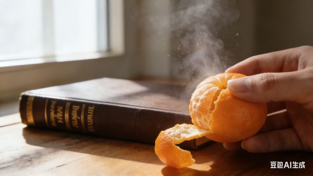 指甲掐进橘子皮,「噗嗤」一声迸发的雾气,是冬日的小型烟花。书页可以是推理小说里最无关紧要的风景描写,是散文集里突然戳中你的某句废话,甚至只是杂志上的填字游戏。阳光挪一厘米,你就翻一页,时间以果香气和光影的速度流淌,而不是屏幕上的数字时钟。