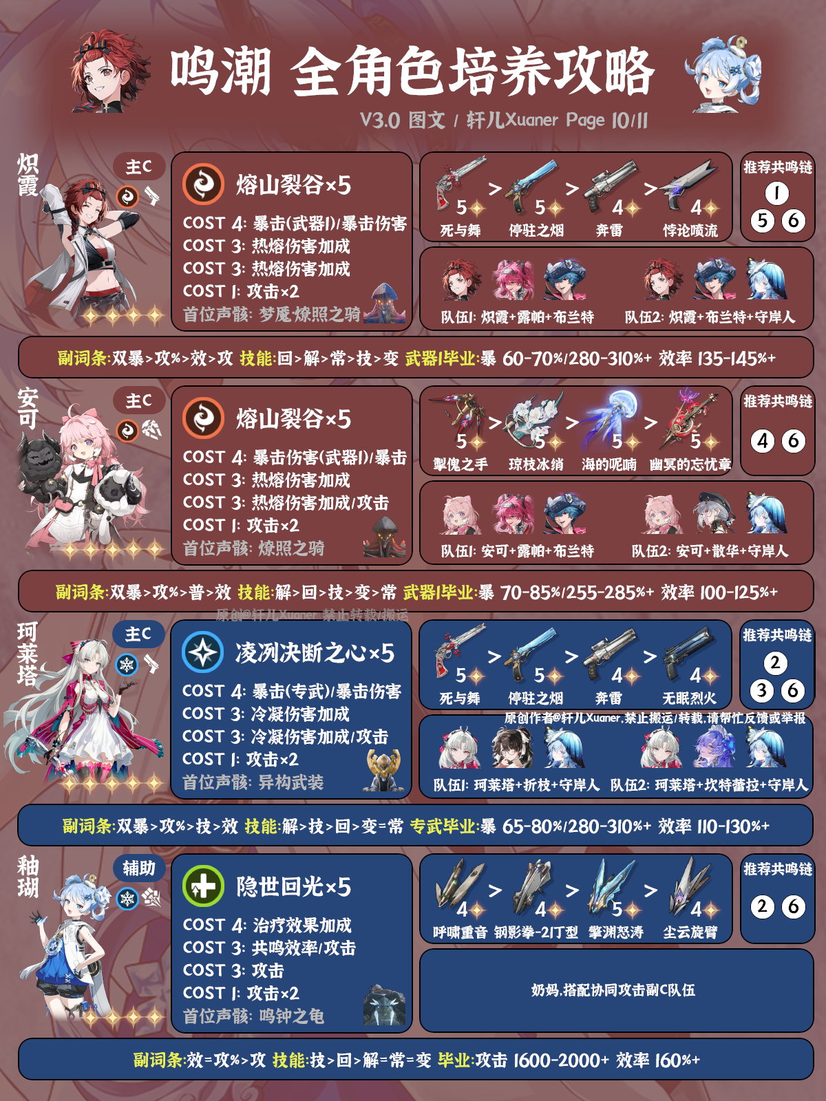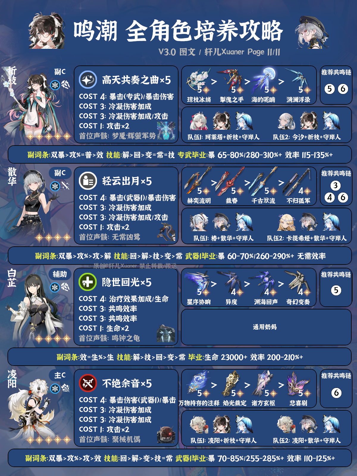 鸣潮V3.0上全角色养成一图流