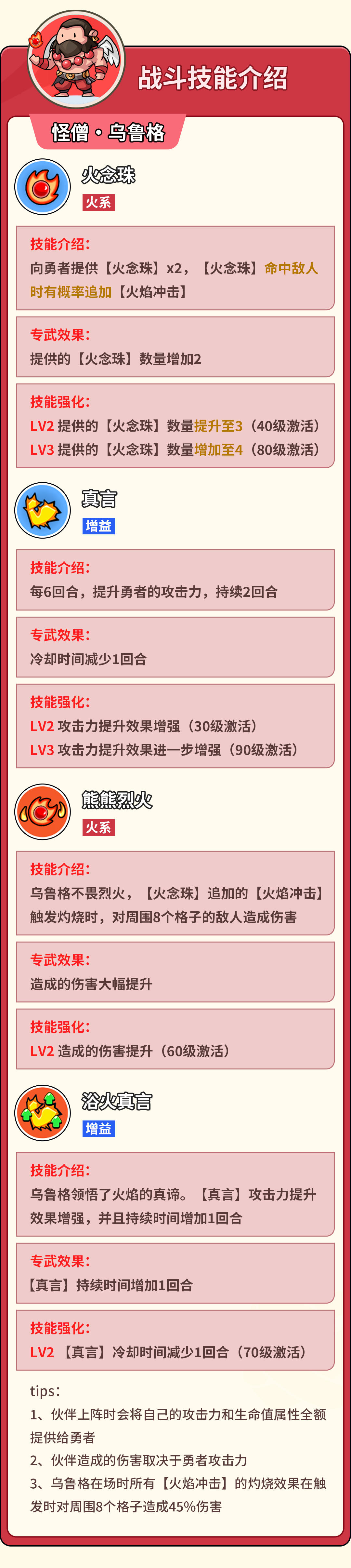 战斗中,乌鲁格将叛逆化为力量。他的火焰并非神圣之光,而是灼热的愤怒与不灭的意志。拳风裹挟烈焰,念珠迸发爆炎,他以最炽烈的方式“超度”敌人——让罪孽在业火中彻底燃尽。